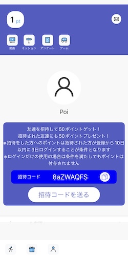 条件を達成すると友達紹介として50ポイントが付与されます。