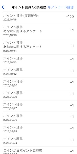 獲得したコインは10コイン=1ポイントで交換可能です。