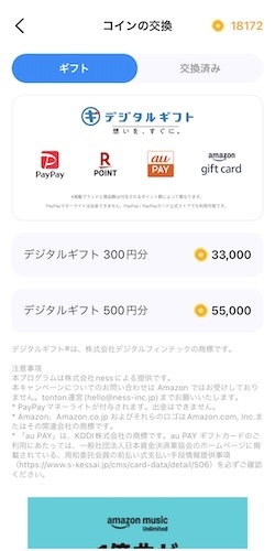 200円分や500円分のデジタルギフトとの交換にも対応しています。