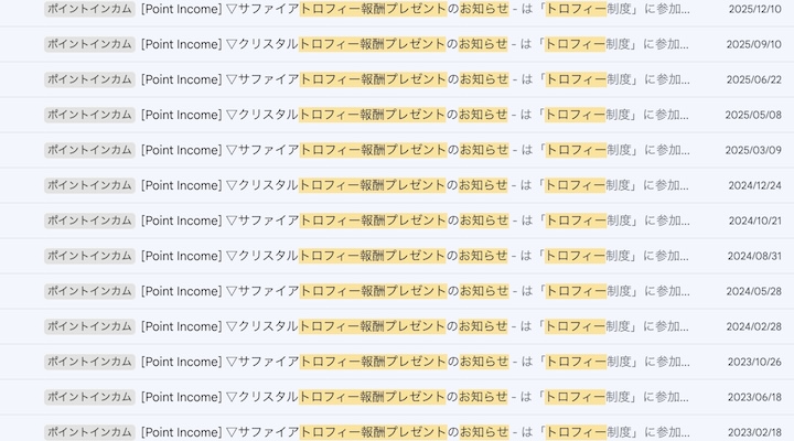 ポイントインカムではトロフィー制度を利用するとログインするだけでポイントが自動的に付与されます。