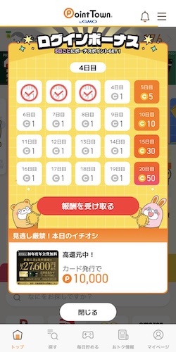 ログインは確実にポイントを貯める手段ではありますが、獲得できるポイントは低めに設定されています。