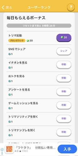 ログインでポイントを貯める大きなデメリットではないですが、単価の高いアプリや自分の貯めたいポイントから優先的に利用すると効率的にポイントを貯められます。