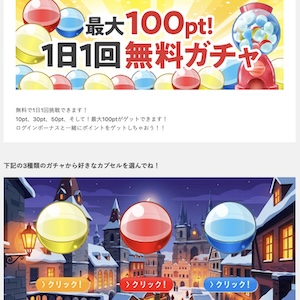 ただし、ガチャを引くのにそれほど時間はかからないので継続していると意外とポイントが貯まります。