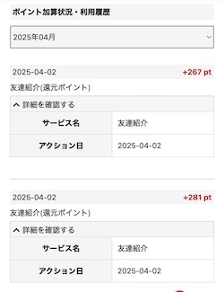 今までに何度もポイントを交換しており、友達紹介コードもたくさんご利用いただいています。