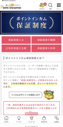 ポイントインカムは保証制度が充実しており、万が一ポイントが付与されなかった場合でも条件を満たしていればポイントを受け取ることができます。