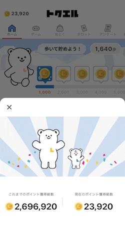 トクエルは歩数やタロット、ミッションなど日常のスキマ時間で手軽にポイントが貯まるのが魅力です。